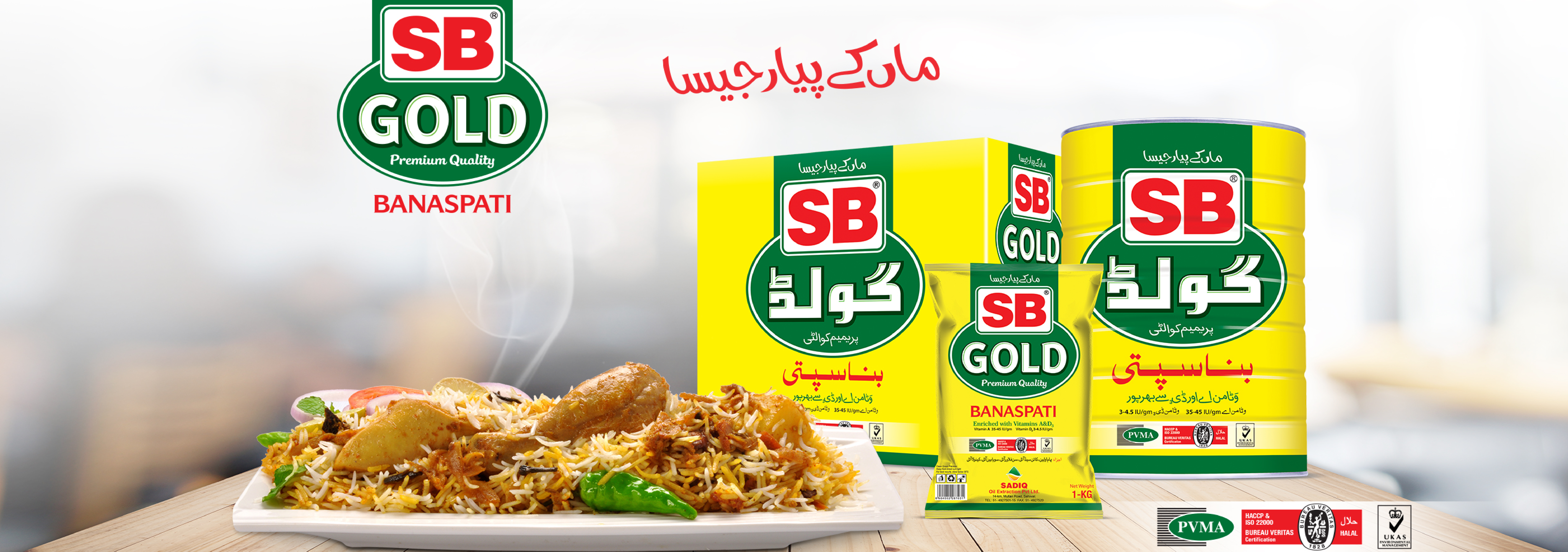 Sadiq Group launched SB Gold Banaspati, Cooking Oil & Canola Oil, is produced in most modern plant with international food safety standards Bureau Veritas 1828. Cooking oil and Banaspati is marketed through a network of distributors and reach to consumers